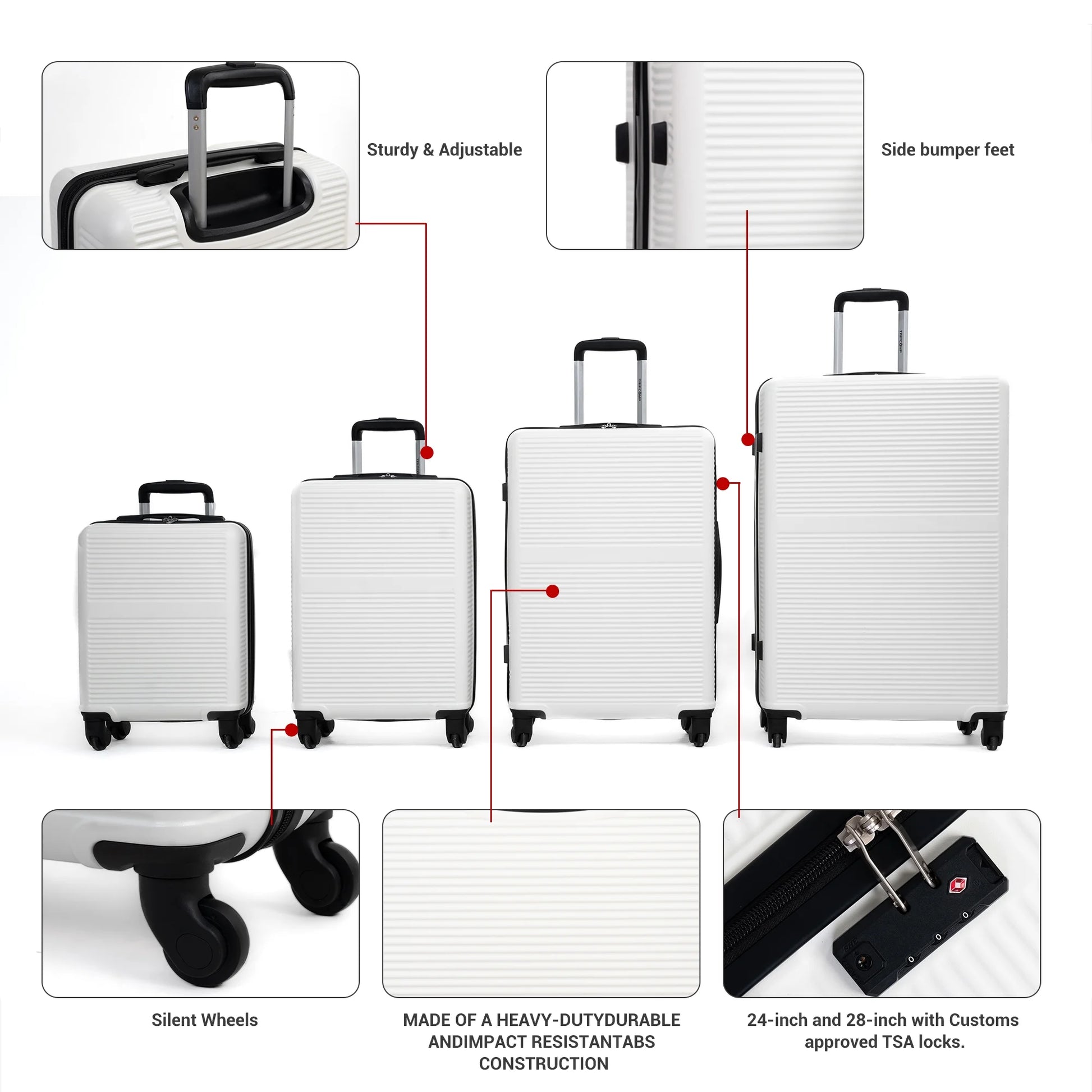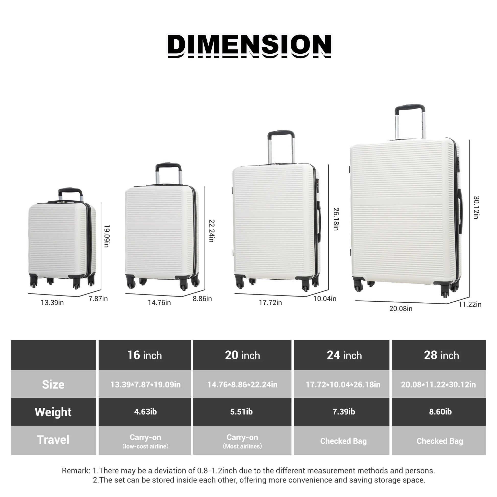 Set completo de 7 piezas: 4 maletas rígidas (16"/20"/24"/28"), 1 bolsa de lona y 2 cubos de embalaje