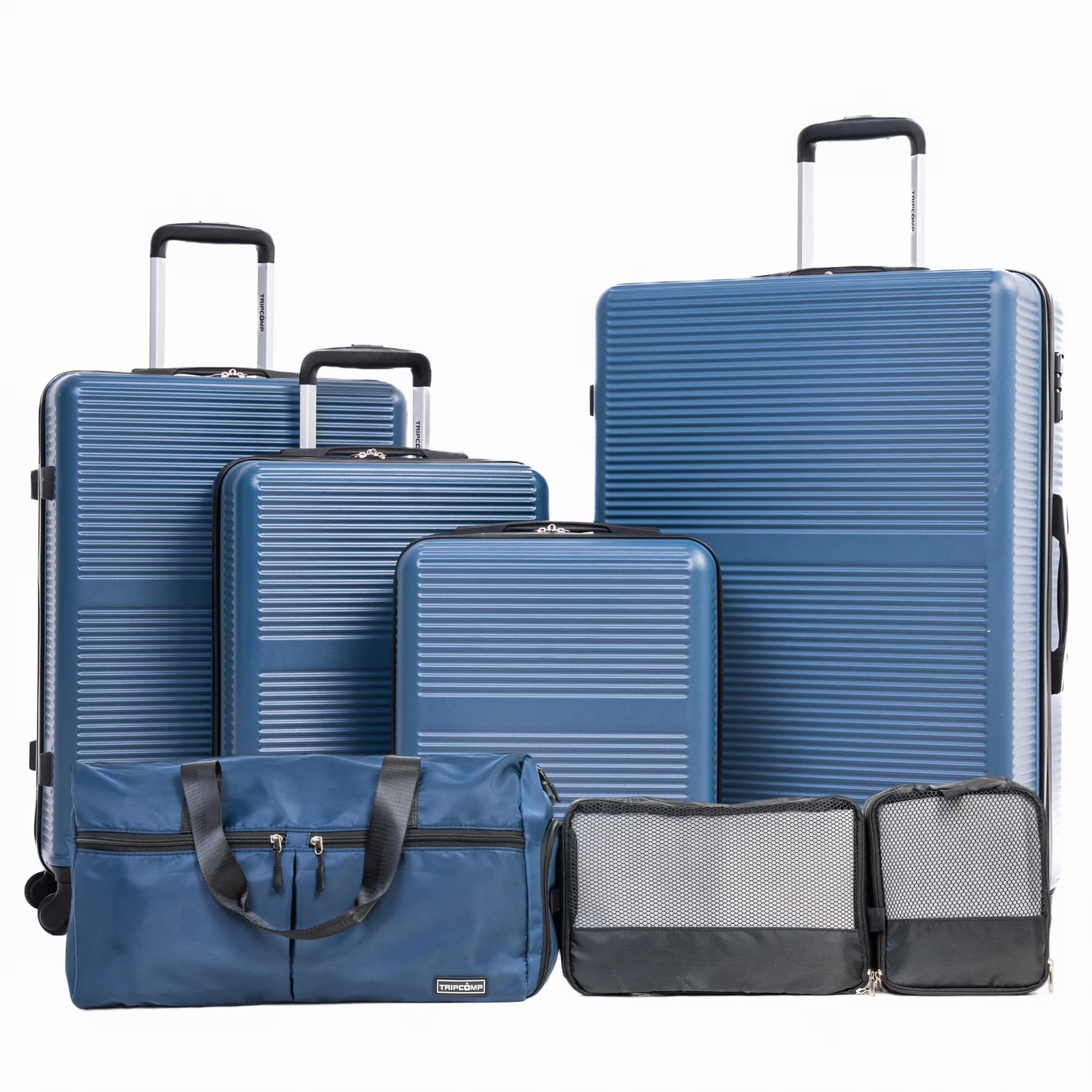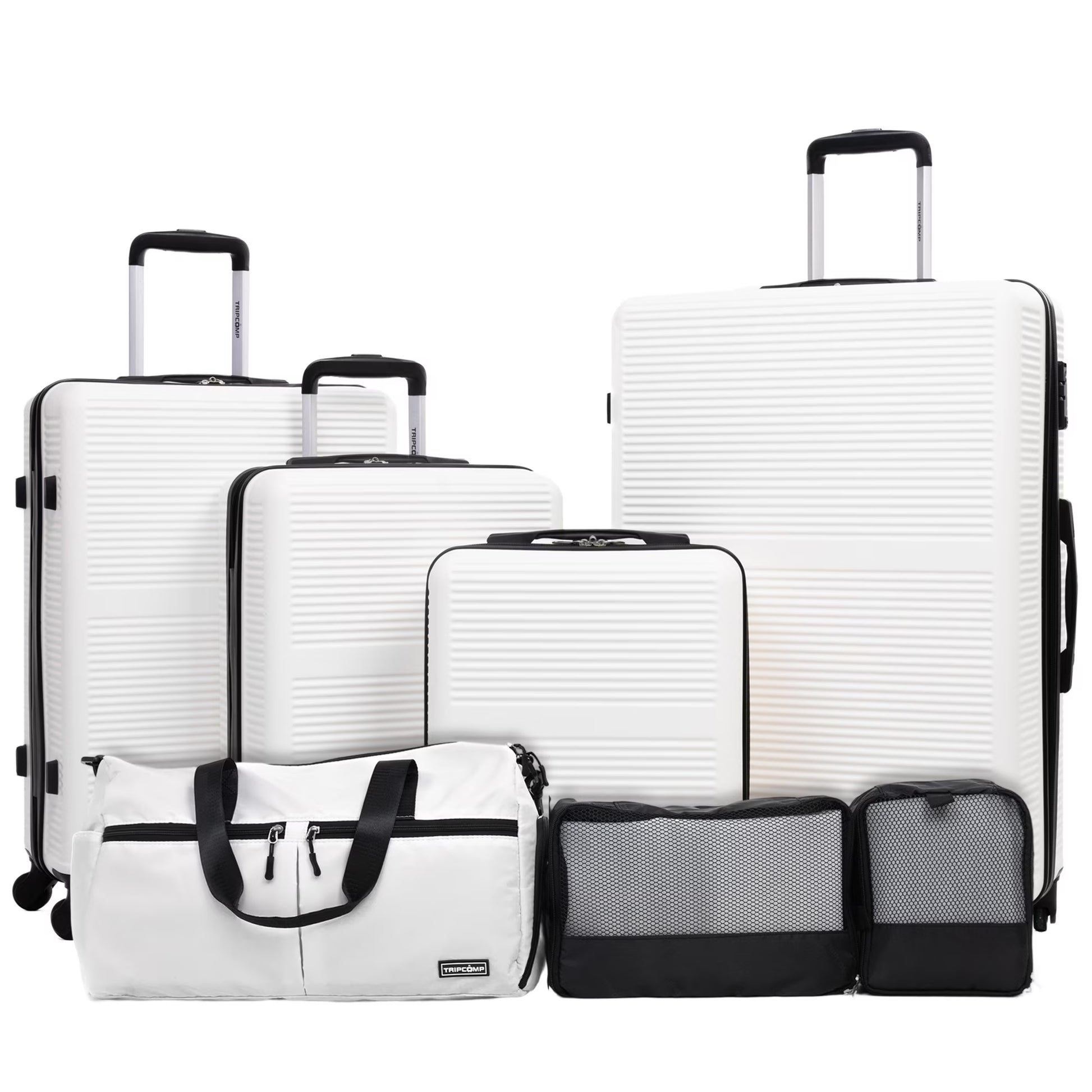 El juego de maletas rígidas Tripcomp de 7 piezas combina resistencia, ligereza y estilo. Fabricado en ABS+PC con acabado texturizado antiarañazos, incluye maletas de 16"/20"/24"/28", bolsa de lona y 2 cubos de embalaje.