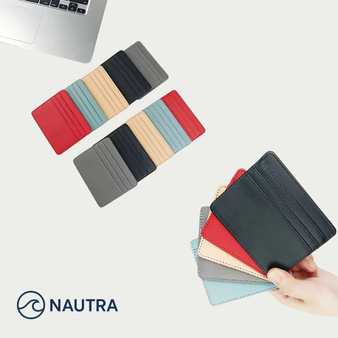 Estuche de tarjetas en cuero PU con diseño slim, ligero y multi-slot. Ideal para guardar tarjetas de crédito, débito, identificación o negocio con estilo y practicidad.